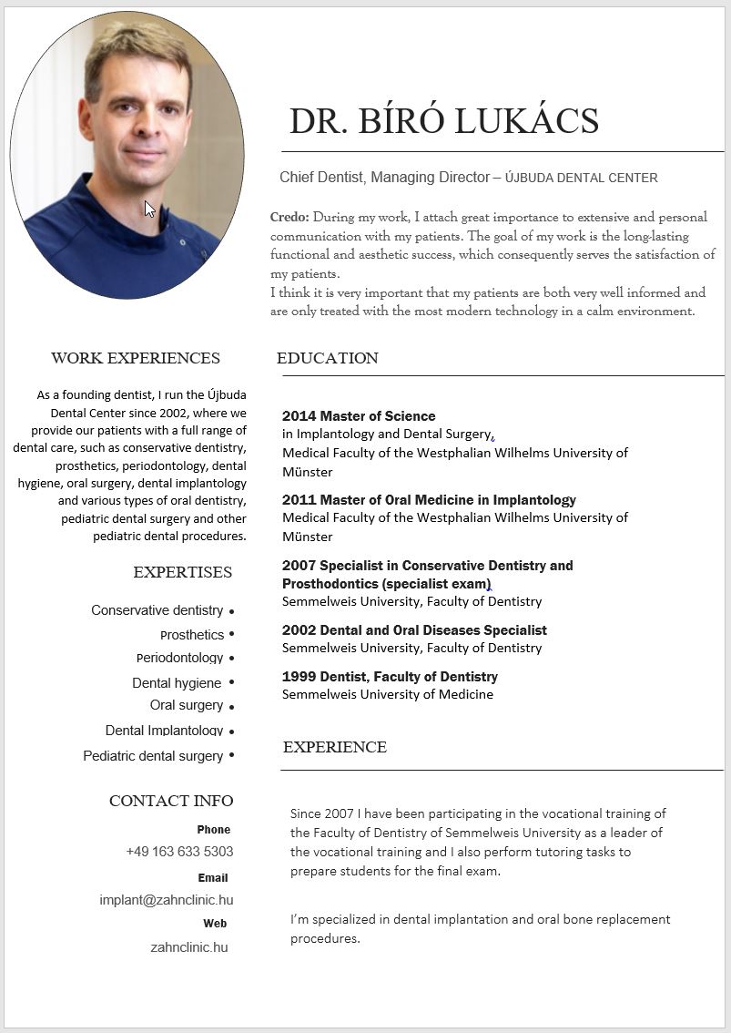 Dr. Bíró Lukács MSc general dentist, dental-, implant surgeon